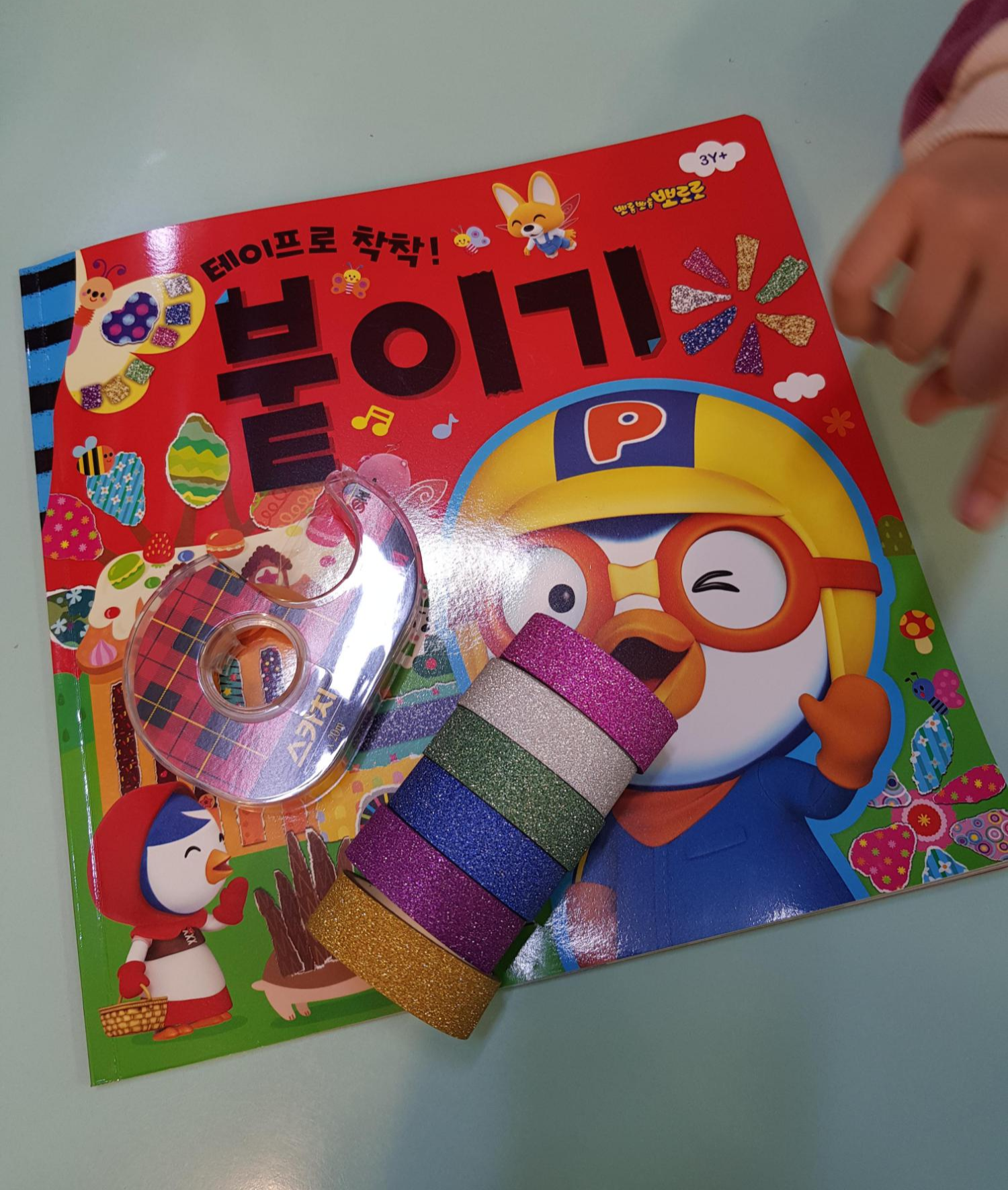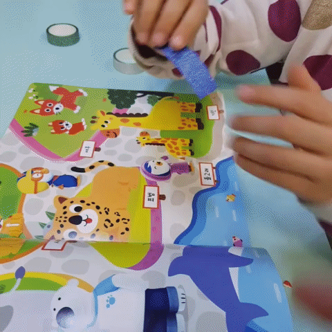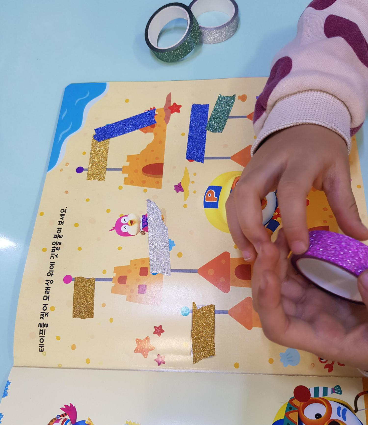 손으로 테이프를 찢어서 그림책에 붙이면 되는데,