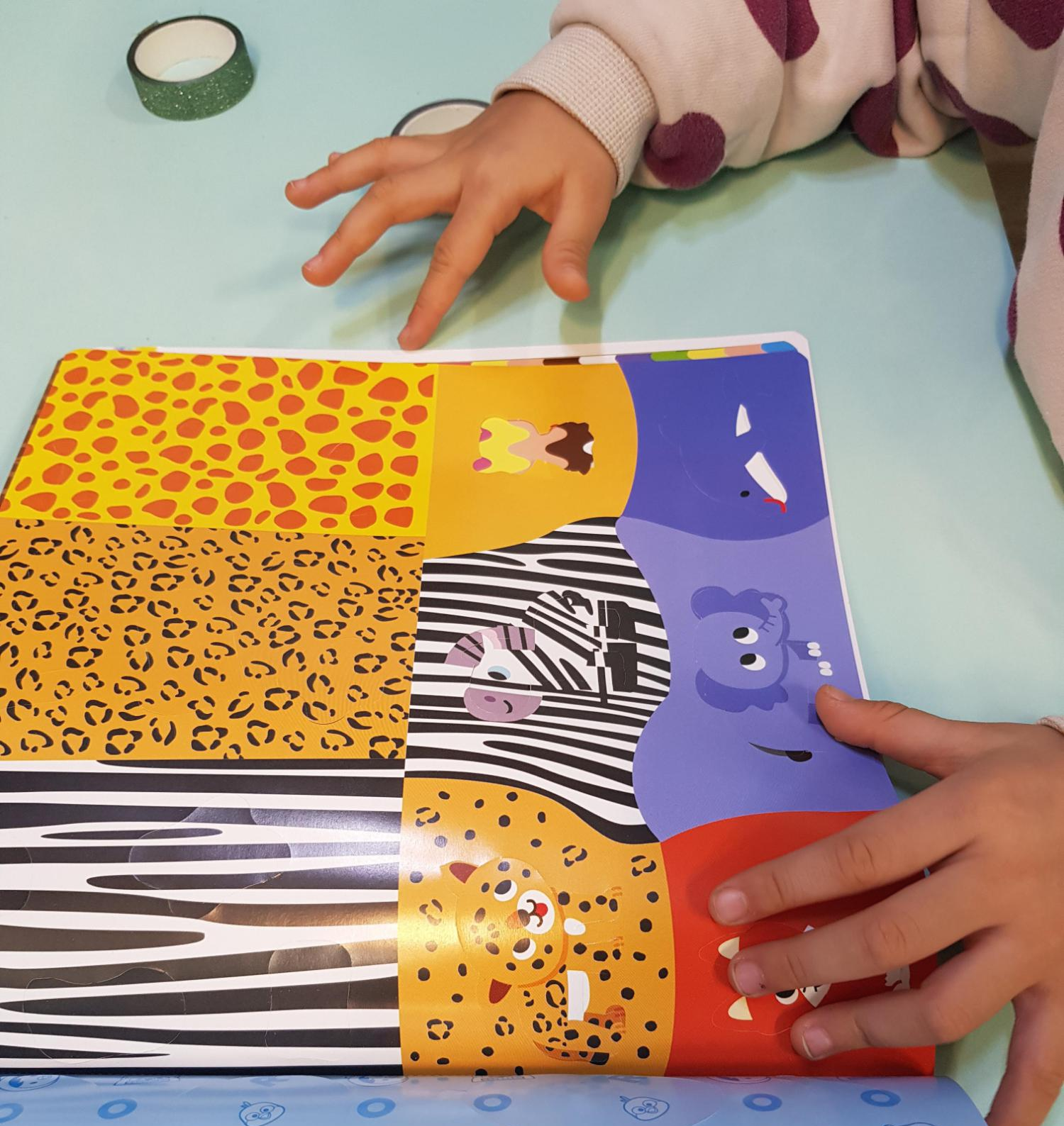 그럴 때는 아이에게 시범을 보여주거나 살짝 아이의 손을 잡아서 테이프를 함께 찢어보자.