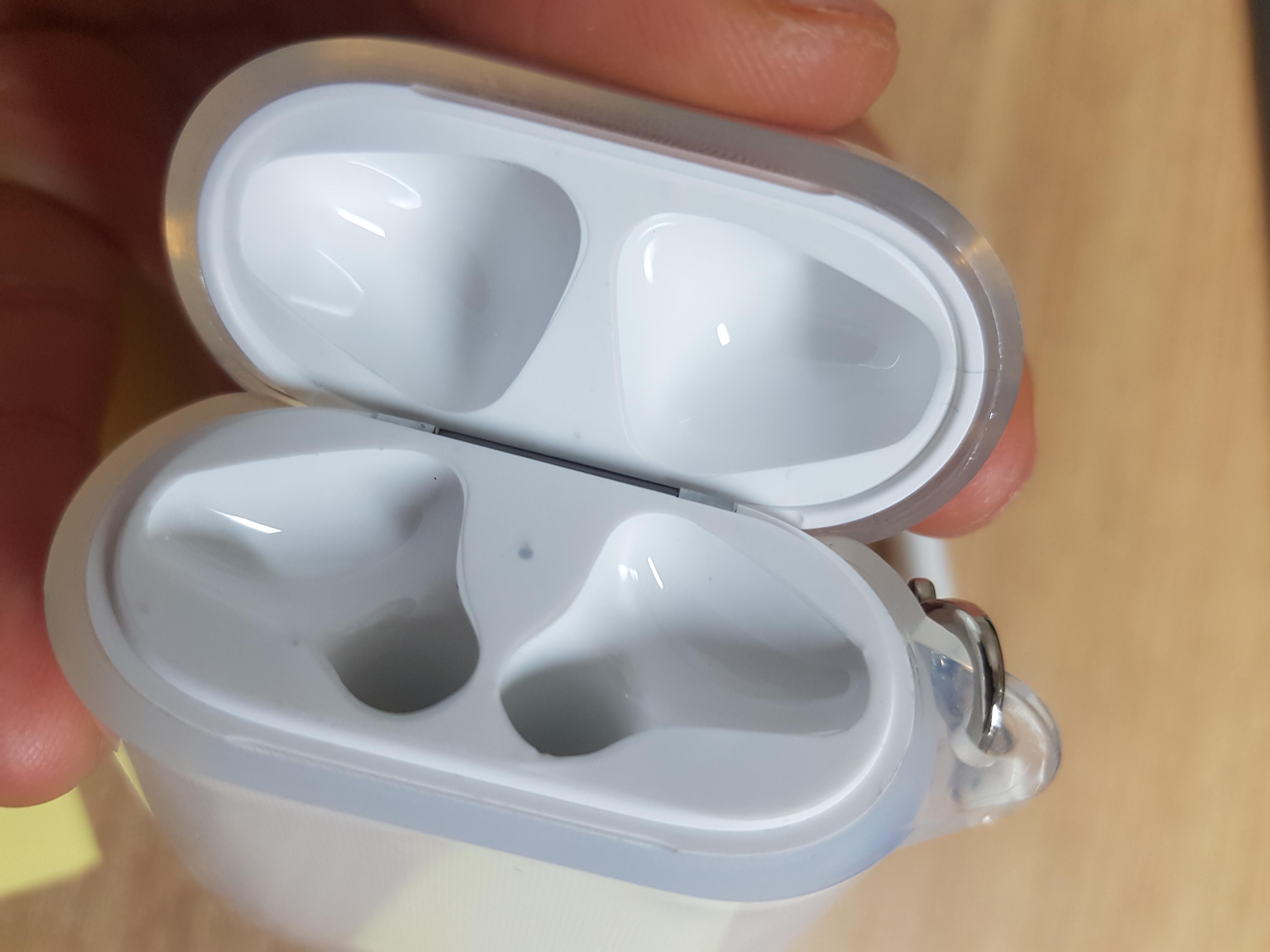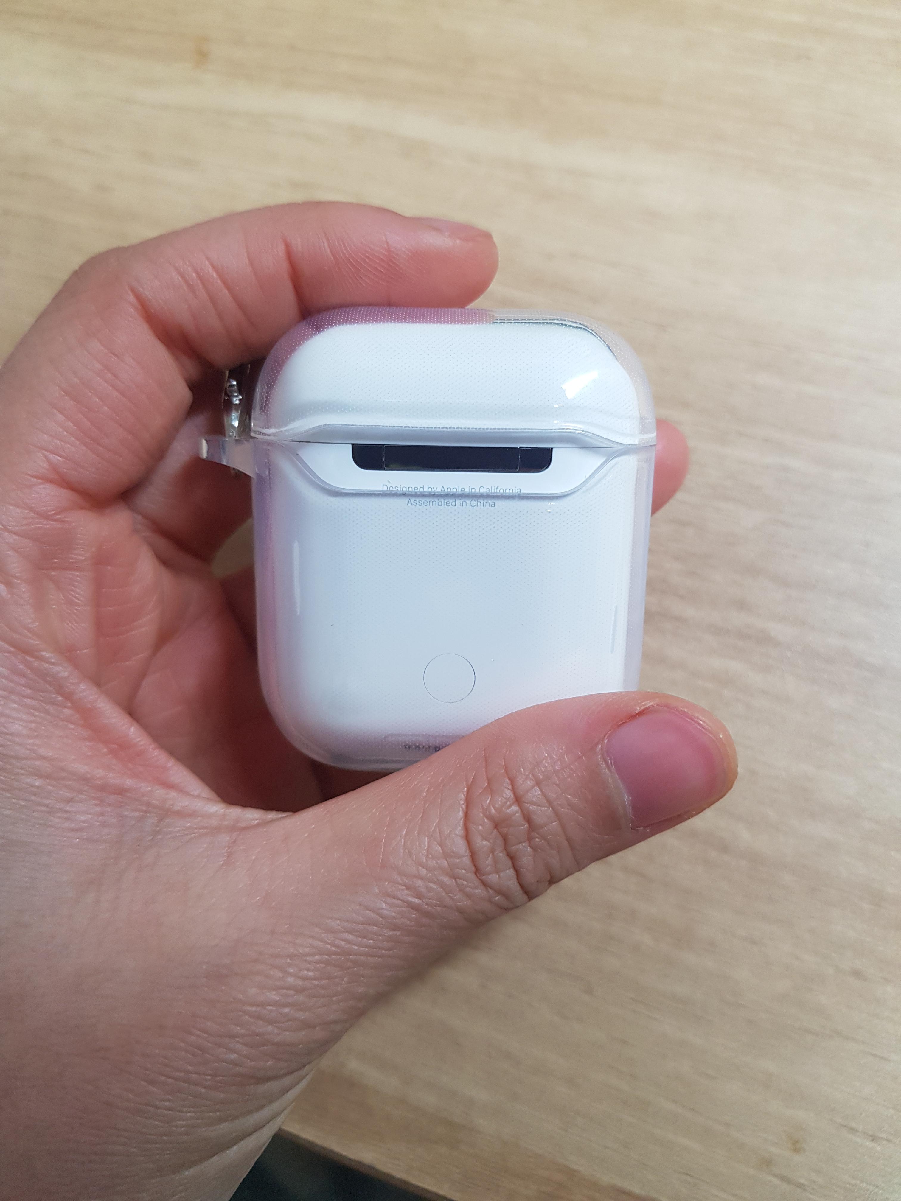 실리콘 케이스의 단점은 에어팟을 넣을 때 실리콘과 에어팟 사이의 틈으로 기포가 생길 수도 있다는 것.