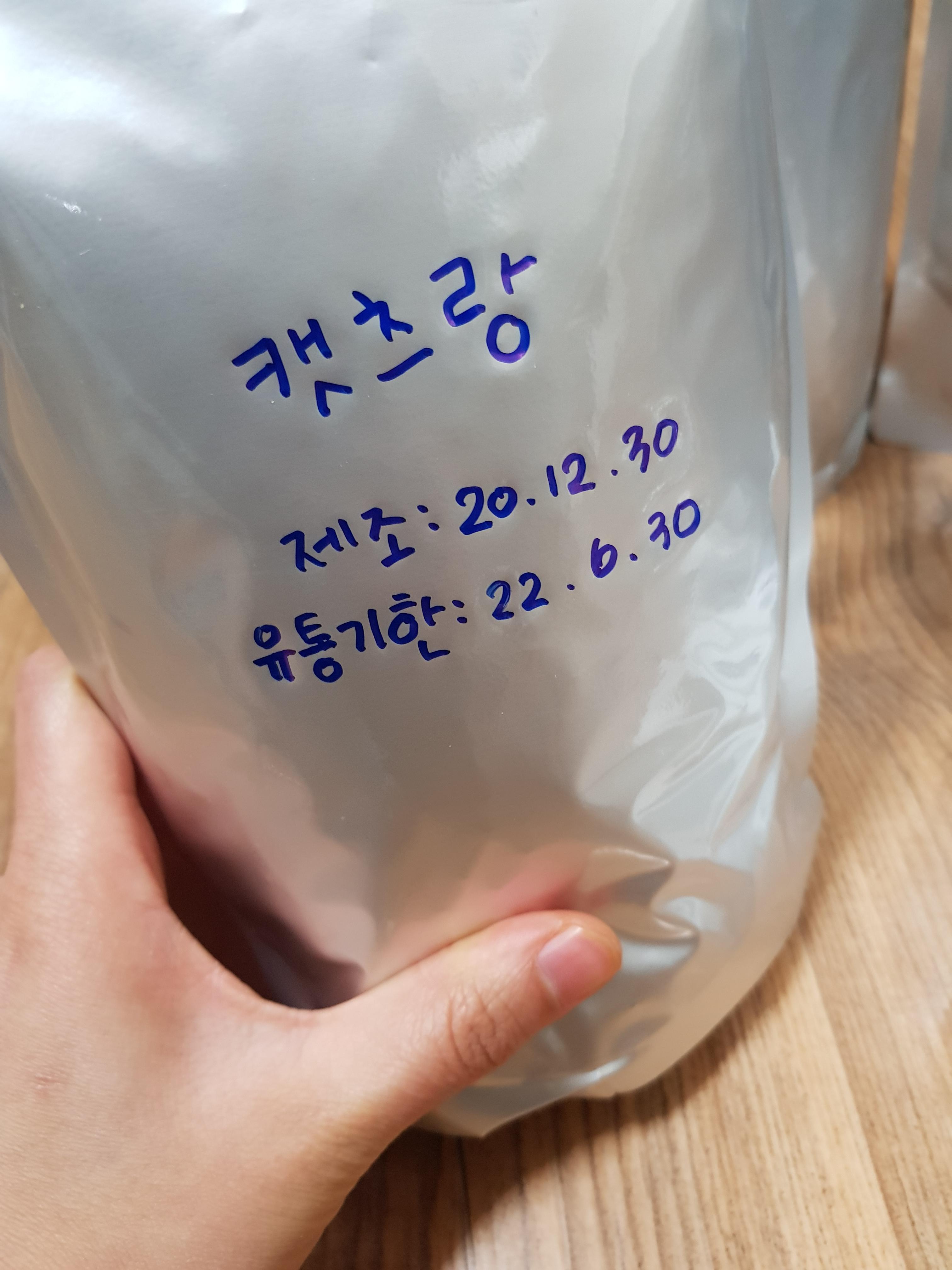 사료 이름과 제조일, 유통기한을 네임펜으로 적어두기 😉