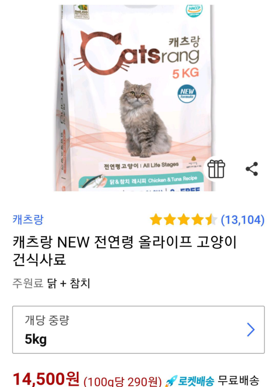 이번에는 캣츠랑 5kg를 구매했다.
