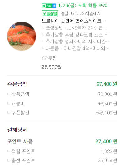 14일에 두팜 생연어 슬라이스를 1kg을 주문했었다.