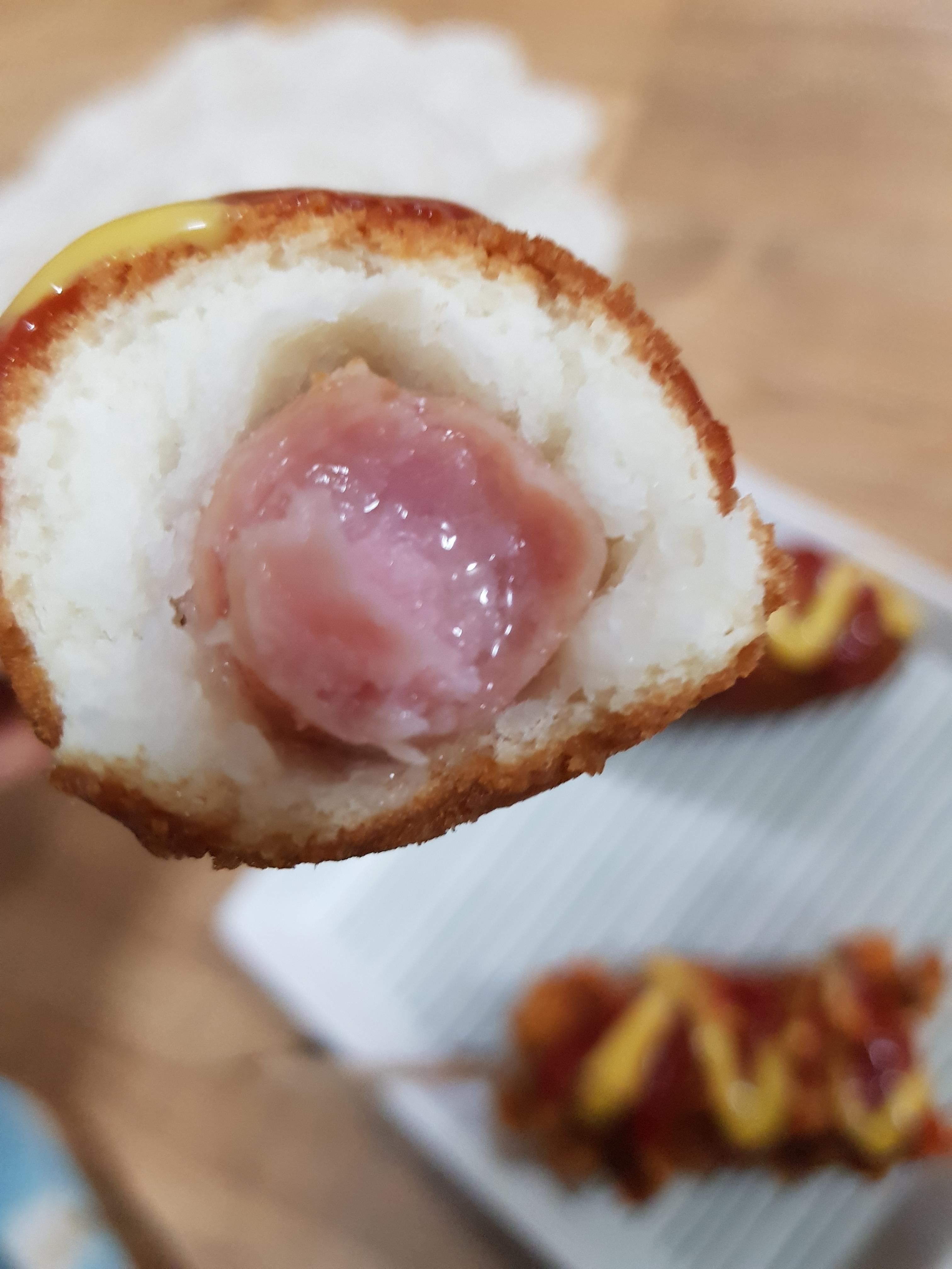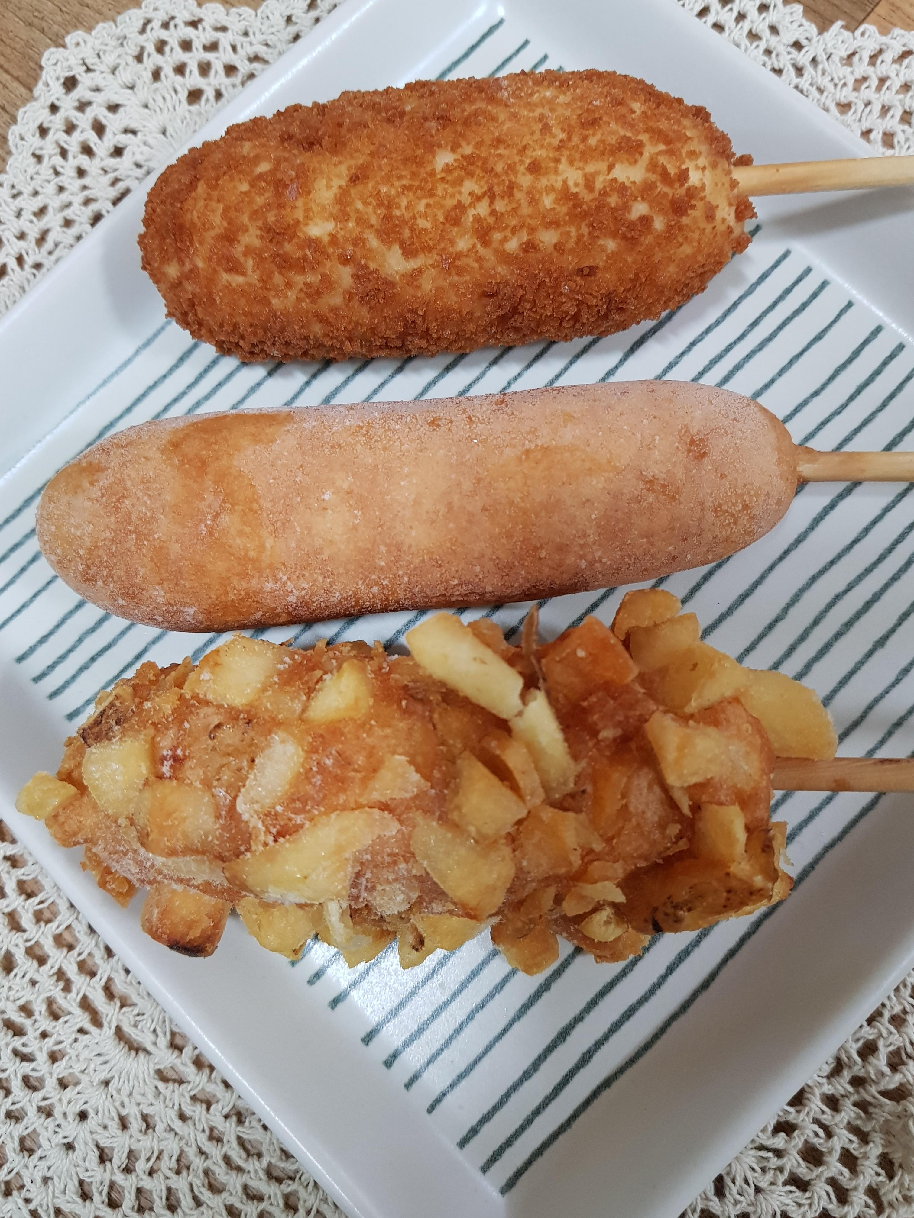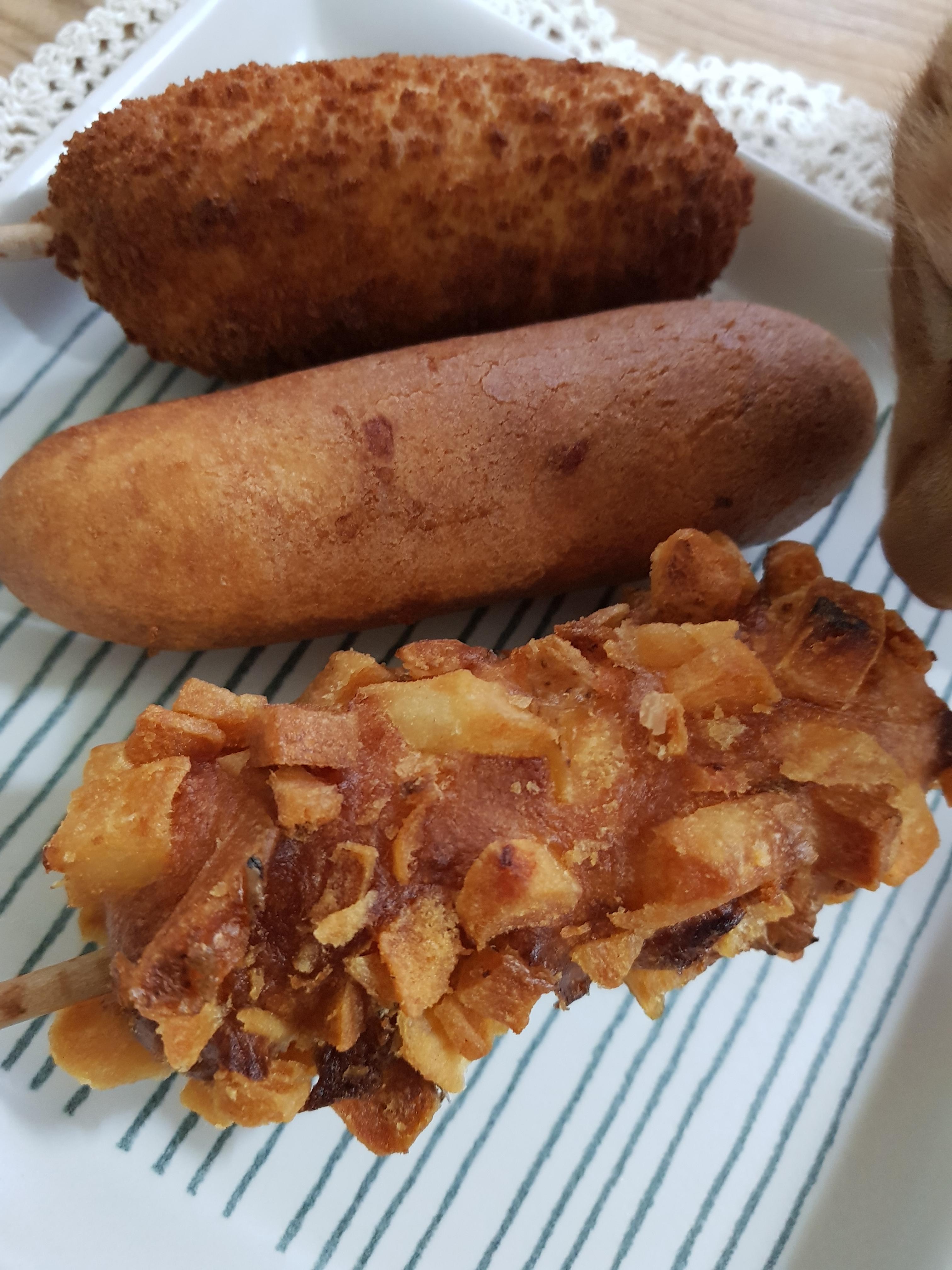 그리고 확실히 다른 핫도그보다 덜 바삭하다. 빵가루의 차이인 듯