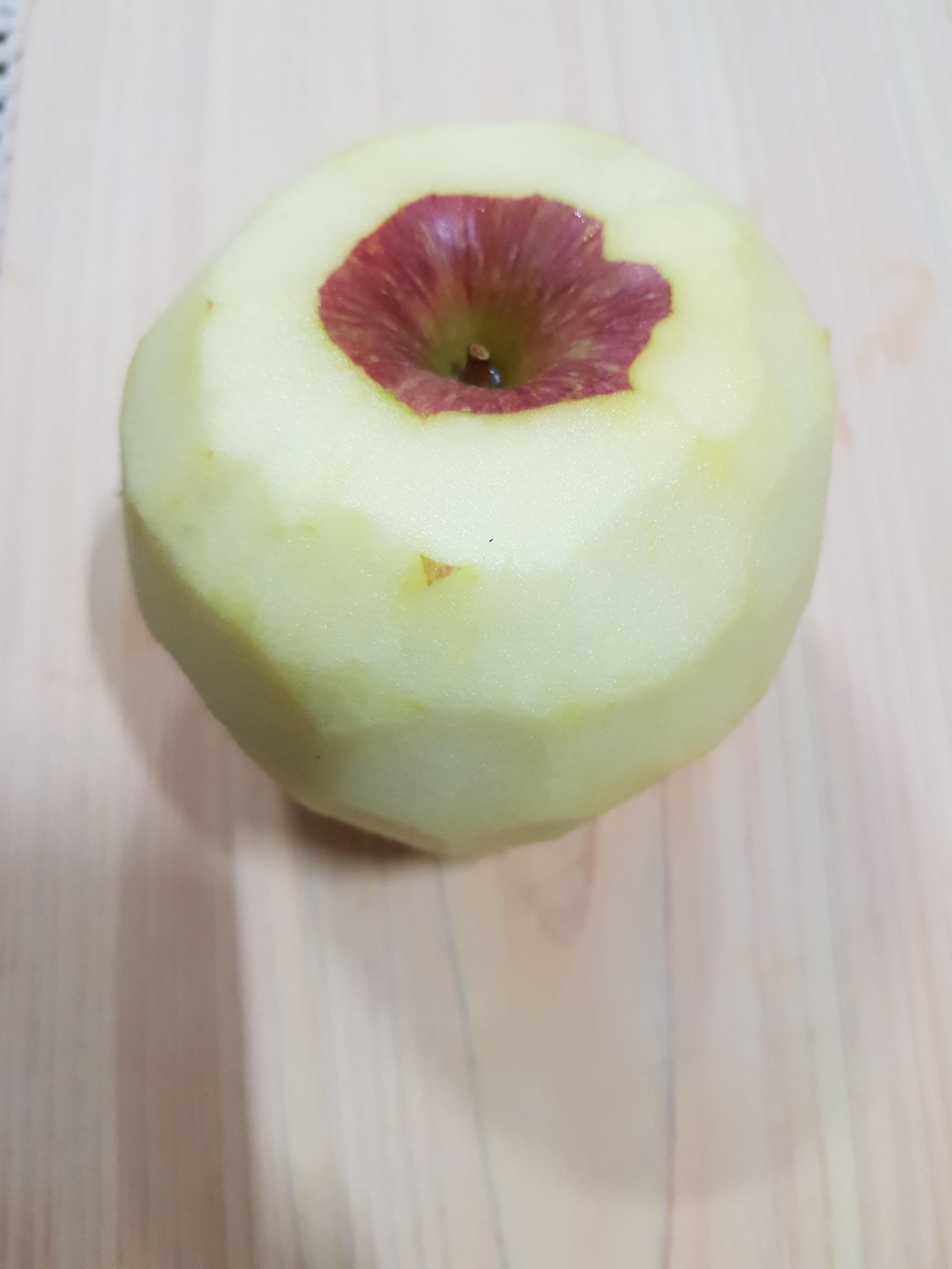 나는 사과 2개는 좀 작게, 나머지 2개는 좀 크게 잘랐다.