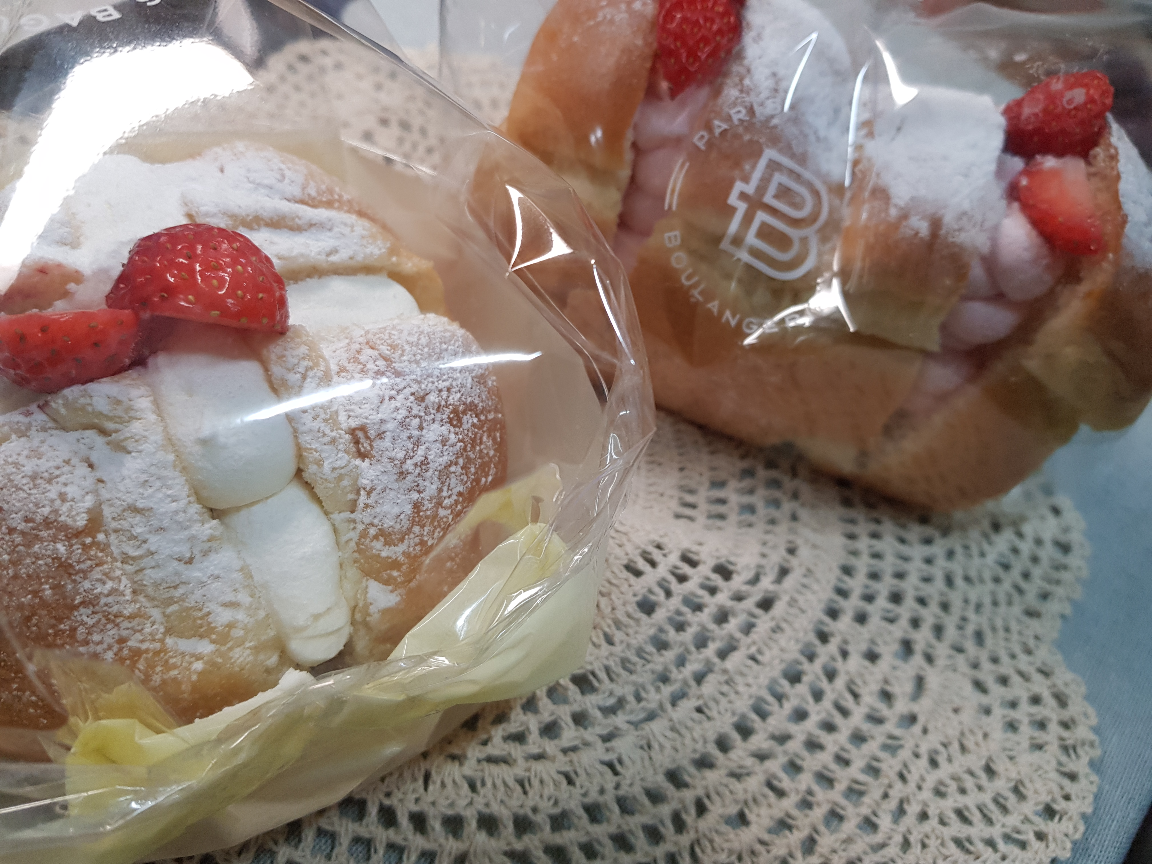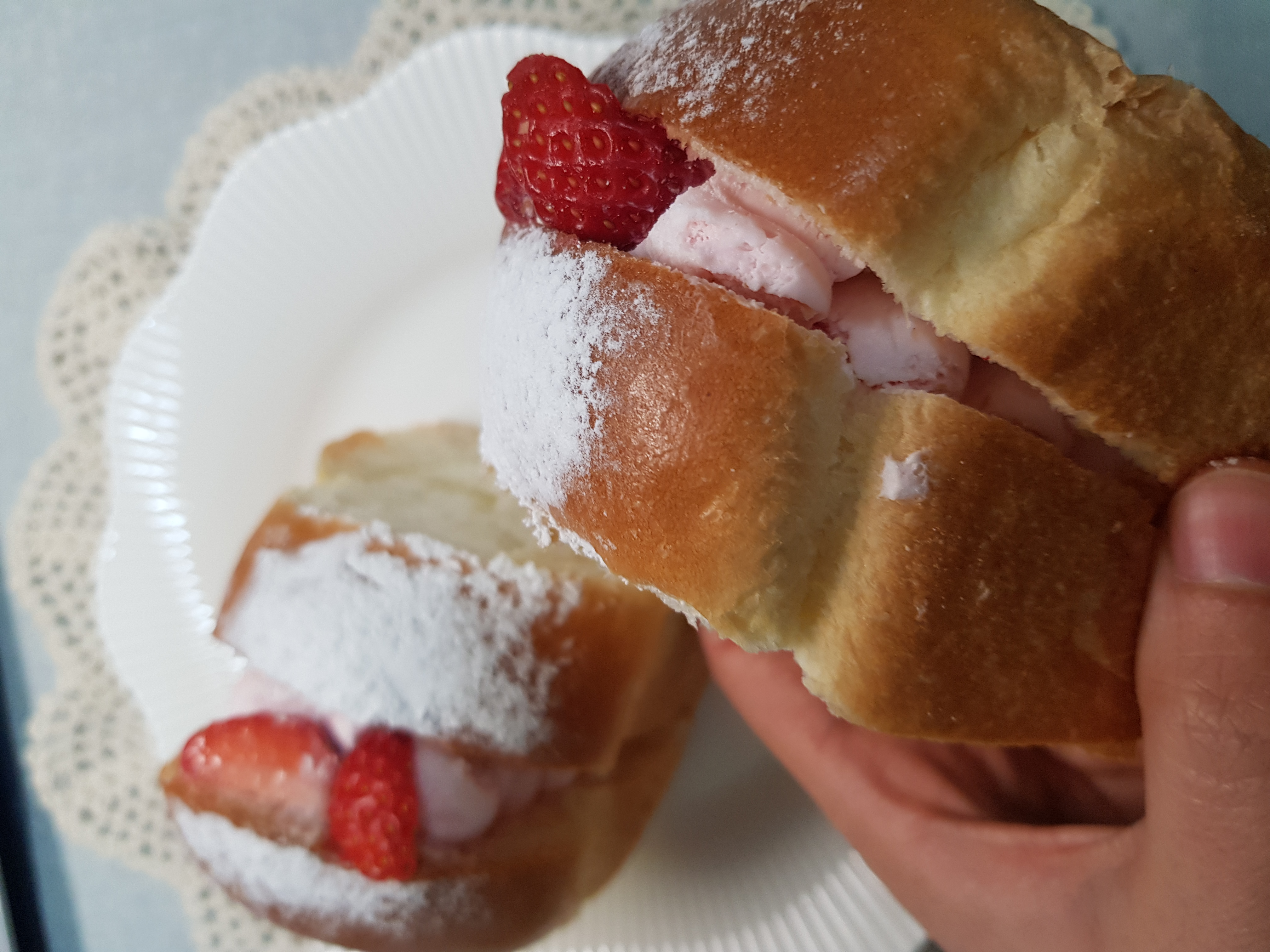 딸기요거트 크림이어서 빵 안에 딸기우유빛 크림이 잔뜩 들어 있음😍