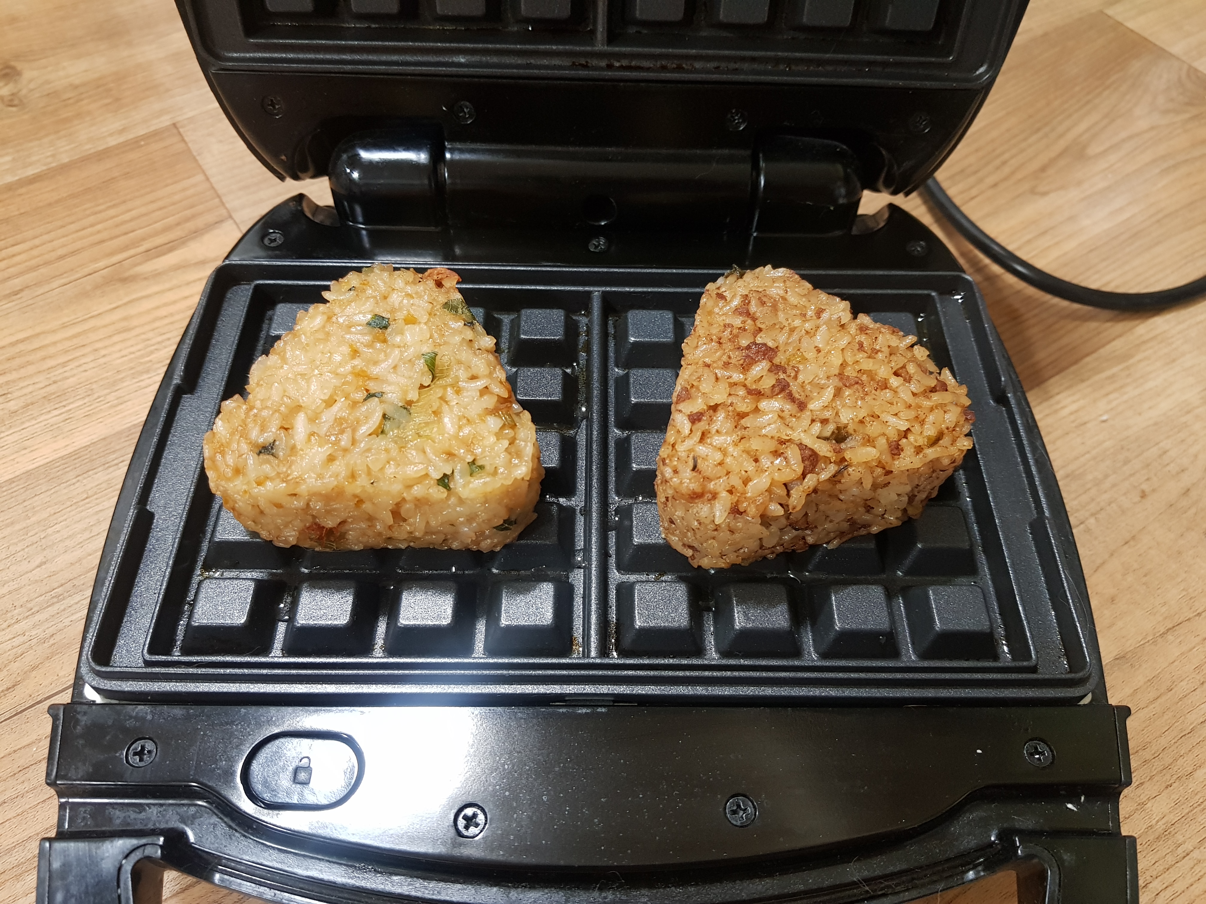 전자레인지로 우선 조리한 주먹밥을 올려주고 커버를 닫으면