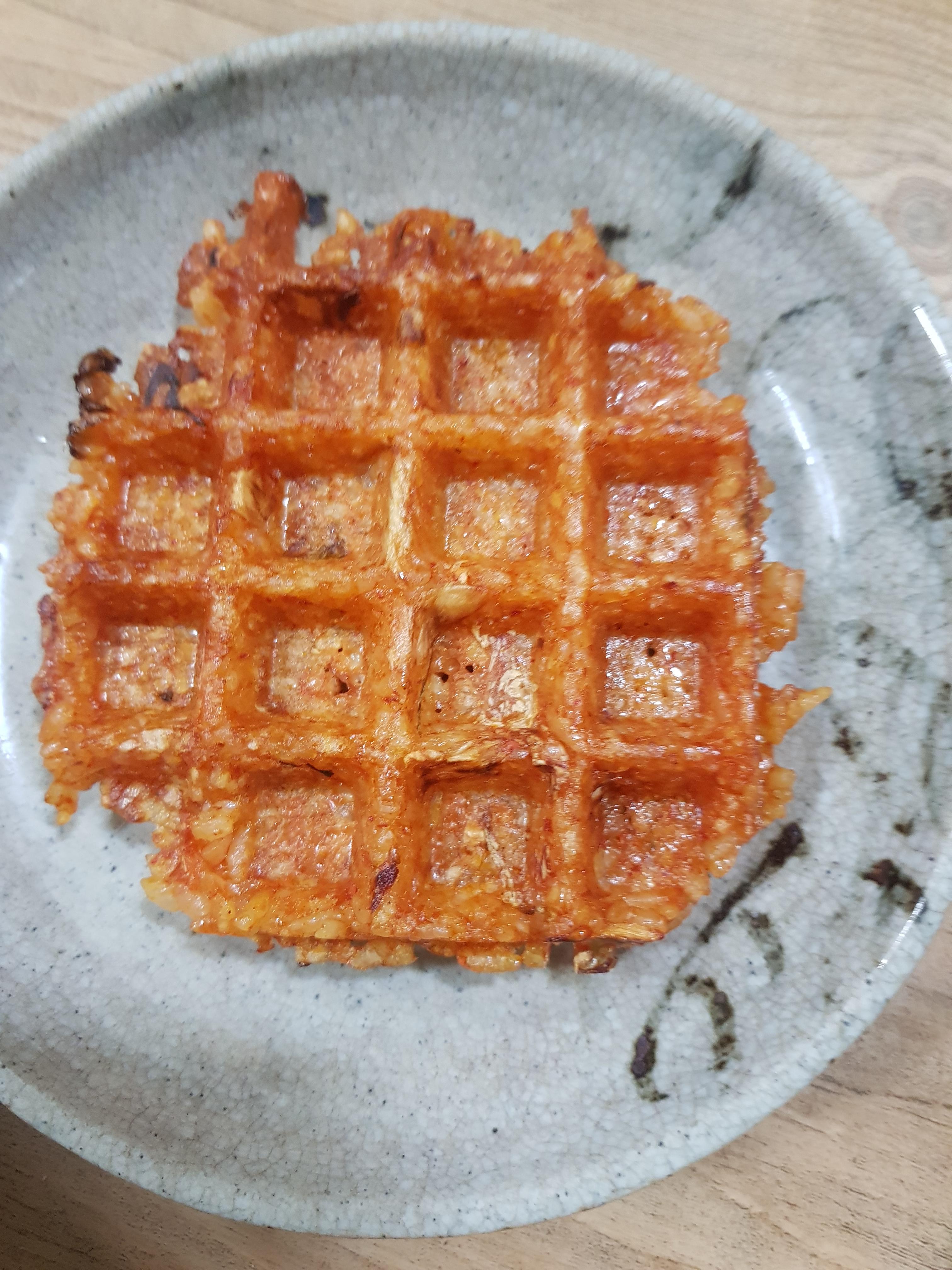 * 바삭한 누룽지 식감 원한다 >> 전자레인지 2분 30초+와플 기계 6분 이상