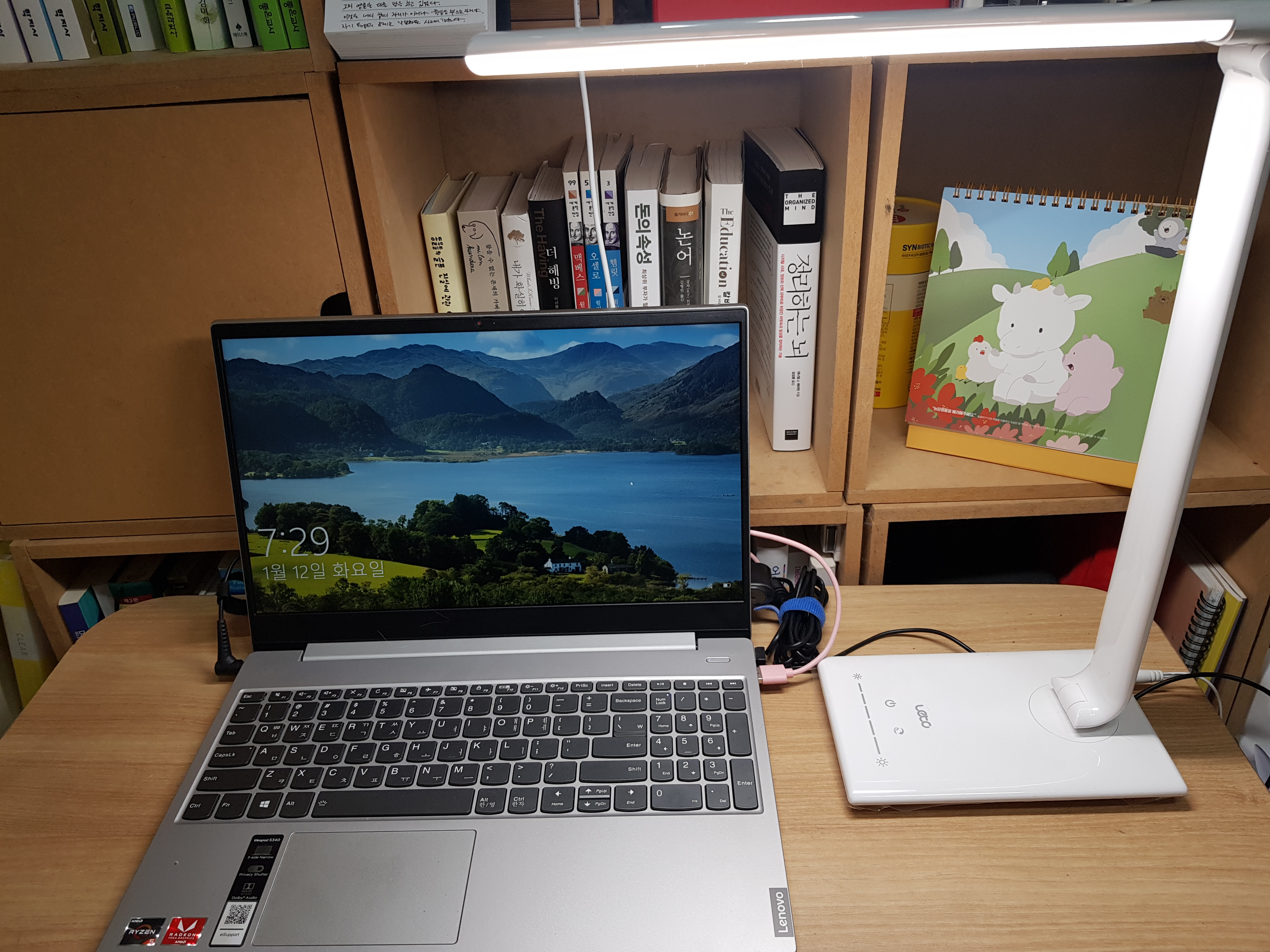 형광등을 끄고 스탠드 조명만으로 책 읽기 가능한지 테스트해보았다.