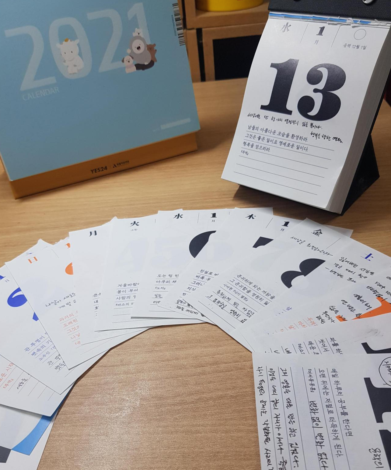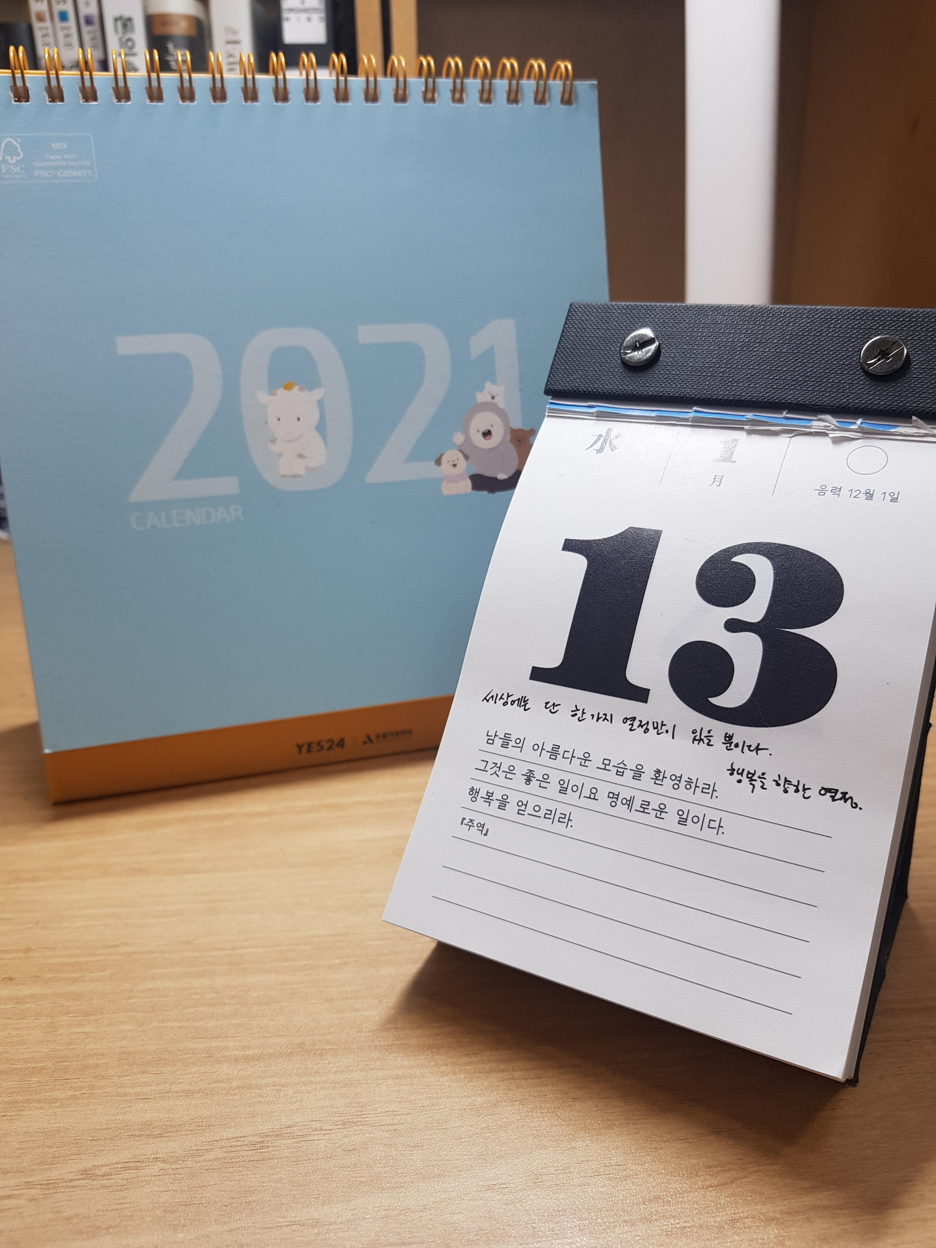 1000원에 구매했던 달력(YES24 X 동물 자유연대)도 유용하게 쓰고 있다 😉